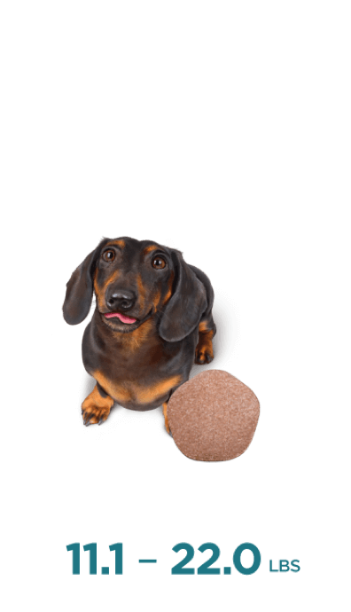 11.1-22.0 lbs | Administer one chewable tablet once a month (Caramel Box) |