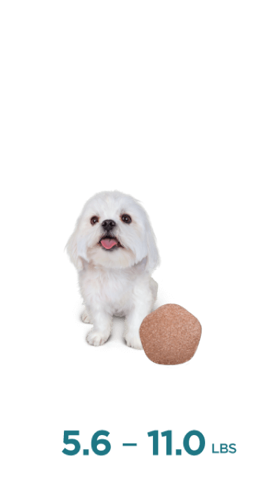 5.6-11.0 lbs | Administer one chewable tablet once a month (Purple Box) |