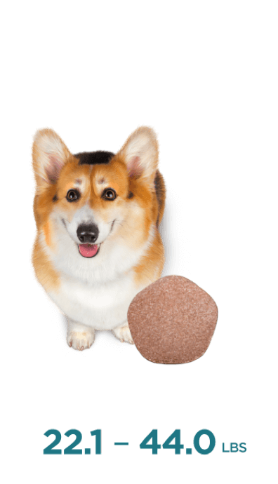22.1-44.0 lbs | Administer one chewable tablet once a month (Teal Box) |