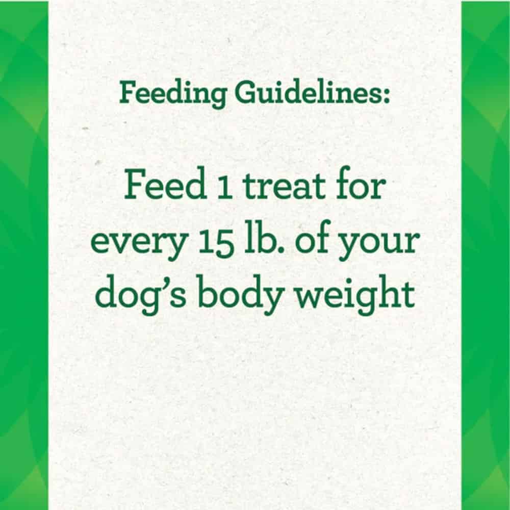 - Capsule: Feed 1 treat for every 15 lbs of your dog's body weight.