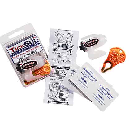 The TickSee Tick Removal Kit contains all you need to find and remove embedded ticks safely and effectively without the use of pesticides or other chemicals. The kit contains one TickKey, one Grip-On Hands-Free LED Flashlight, 4 alcohol swabs, and instructions for use.