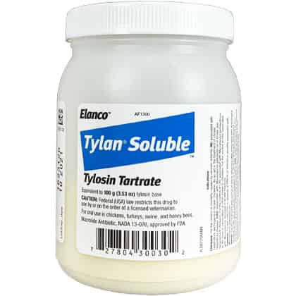 Tylan can be used to treat a variety of bacterial infections in a variety of farm animals and companion pets. It requires a prescription from your veterinarian. It is available as a water-soluble powder.
