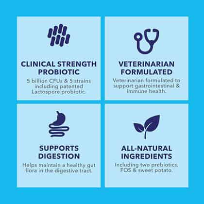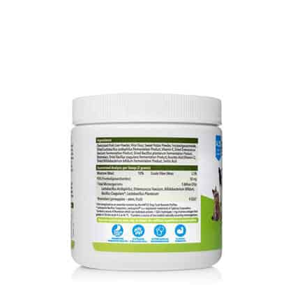 | Other Ingredients: Desiccated Pork Liver Powder, Rice Flour, Sweet Potato Powder, Fructooligosaccharide, Dried Lactobacillus acidophilus Fermentation Product, Vitamin E, Dried Enterococcus faecium Fermentation Product, Dried Bacillus plantarum Fermentation Product, Bromelain, Dried Bacillus coagulans Fermentation Product, Ascorbic Acid (Vitamin C), Dried Bifidobacterium bifidum Fermentation Product, Sorbic Acid. | |