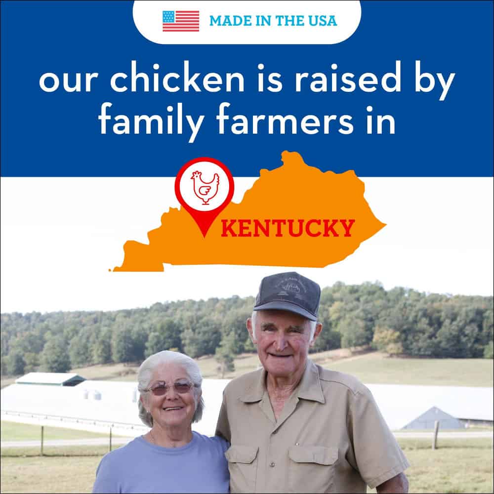 - No Antibiotics Ever - Cage free chicken raised on family farms in Kentucky.