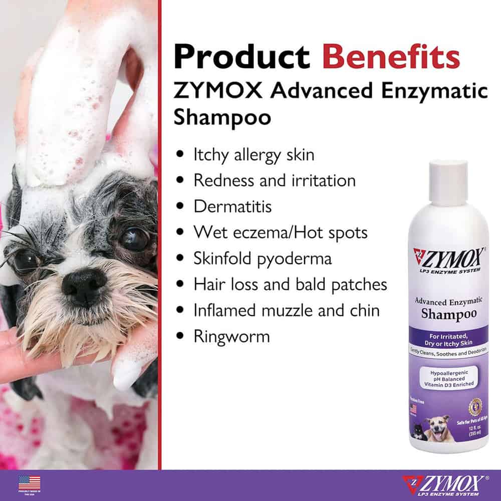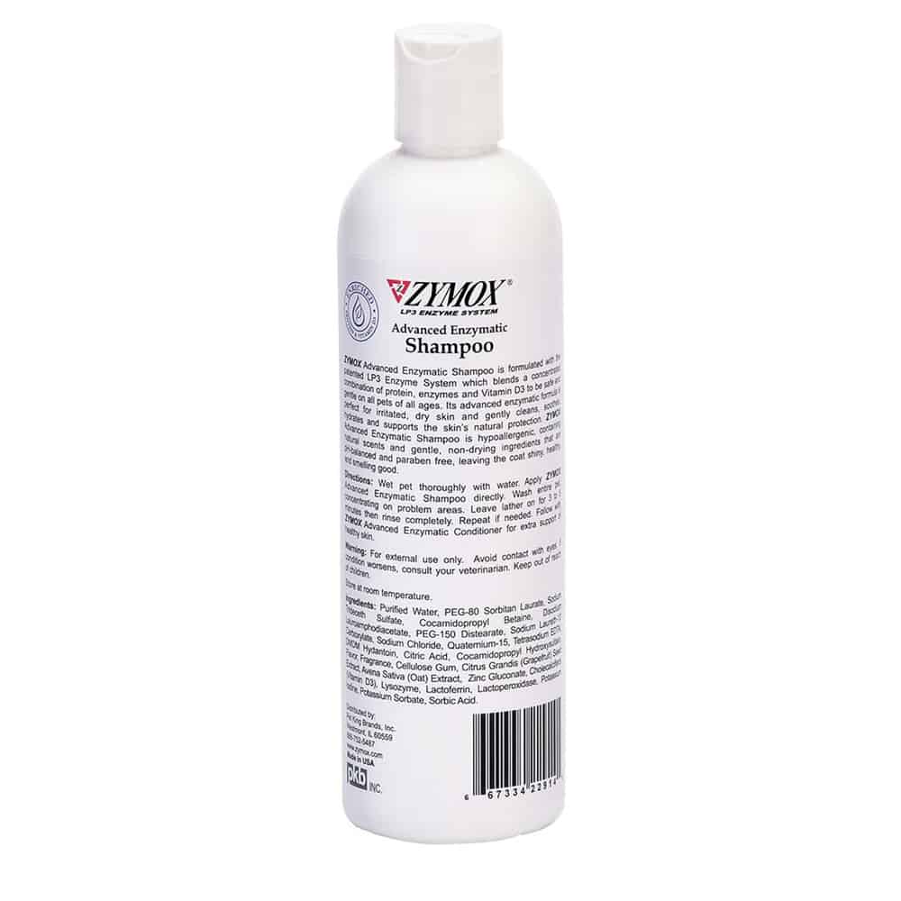 ZYMOX® Advanced Enzymatic Shampoo is formulated to soothe, hydrate, and relieve sensitive, extremely dry, itchy, or irritated skin of pets of any age with gentle, hypoallergenic and pH balanced ingredients. Features the antimicrobial patented LP3 Enzyme System, a concentrated combination of naturally derived enzymes, plus hydrating Vitamin D3 and Avena sativa (oat) extract to calm, nourish, and care for the skin. Does not contain parabens or detergents