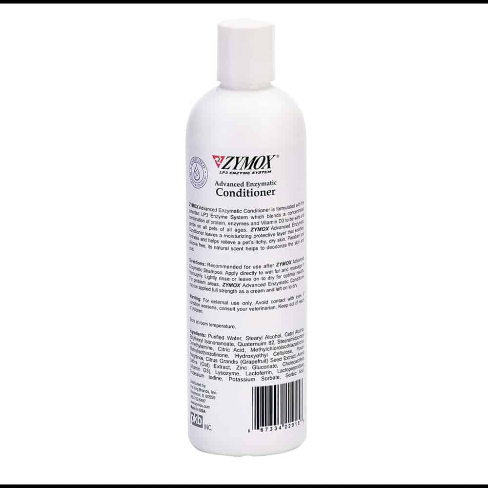 New hypoallergenic ZYMOX ® Advanced Enzymatic Conditioner provides soothing conditioning for irritated, dry, or itchy skin. Formulated to soothe, hydrate, and relieve problematic skin of pets of any age. Features the patented LP3 Enzyme System, a concentrated combination of enzymes, and Gentle. No sting. Tear-free. Won’t strip the coat.to form a moisturizing protective layer to support healthy skin and coat. pH balanced and safe for animals of all ages. May be lightly rinsed off or left on to dry. Dries non-greasy. Non-toxic. Paraben and silicone free.