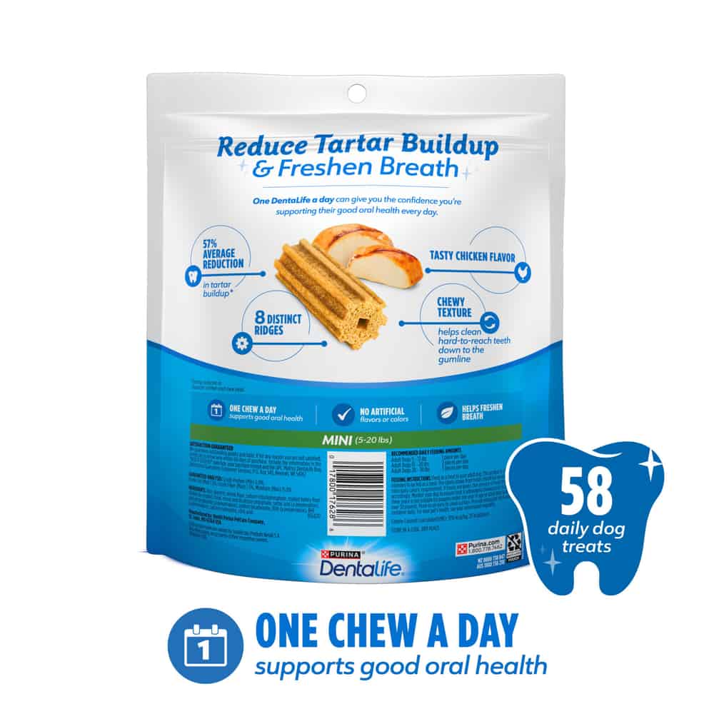 - Purina DentaLife Daily Oral Care dental chews for extra small/small dogs are satisfaction guaranteed (see packaging for details)