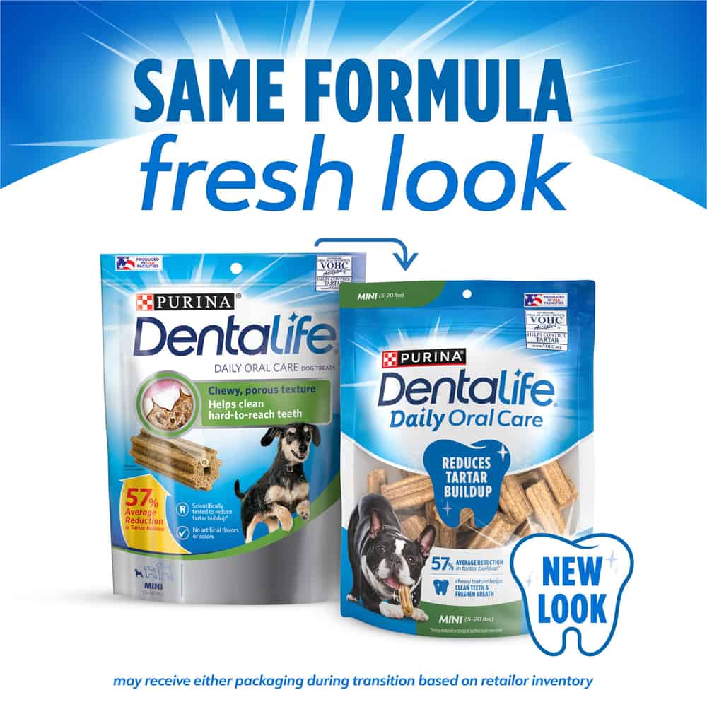 - Purina Dentalife dog treats are VOHC (Veterinary Oral Health Council) accepted products designed for small-sized (5-20 lbs) adult dogs and proudly produced in Purina-owned USA facilities