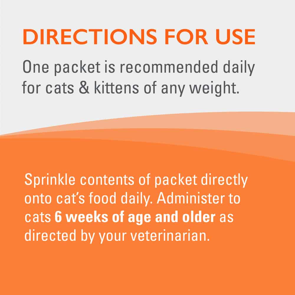 - Sprinkle contents of packet(s) directly onto cat's food once daily.