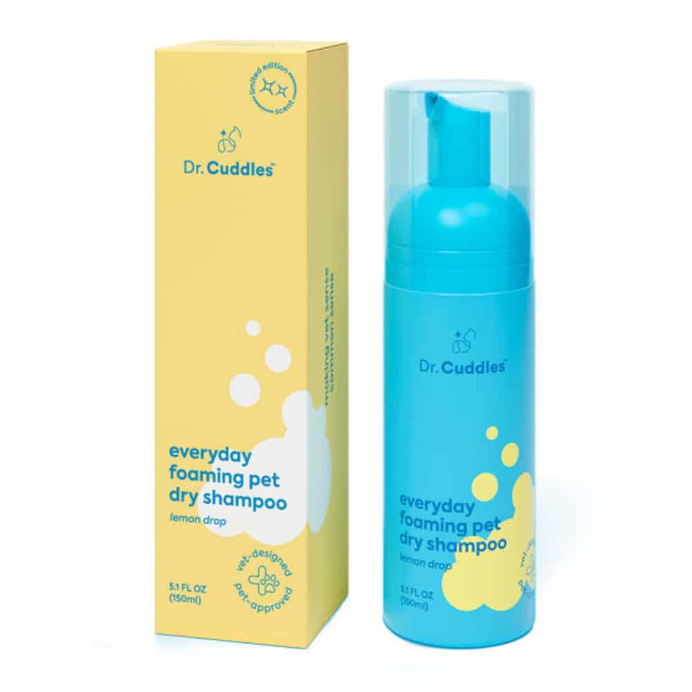All of the benefits of bath time, without the wet pawprints on the floor. The Dr. Cuddles Foaming Dry Shampoo human-grade formula features natural botanicals, deodorants and protein extract ingredients that actively soak up oil and dirt from fur to skin.