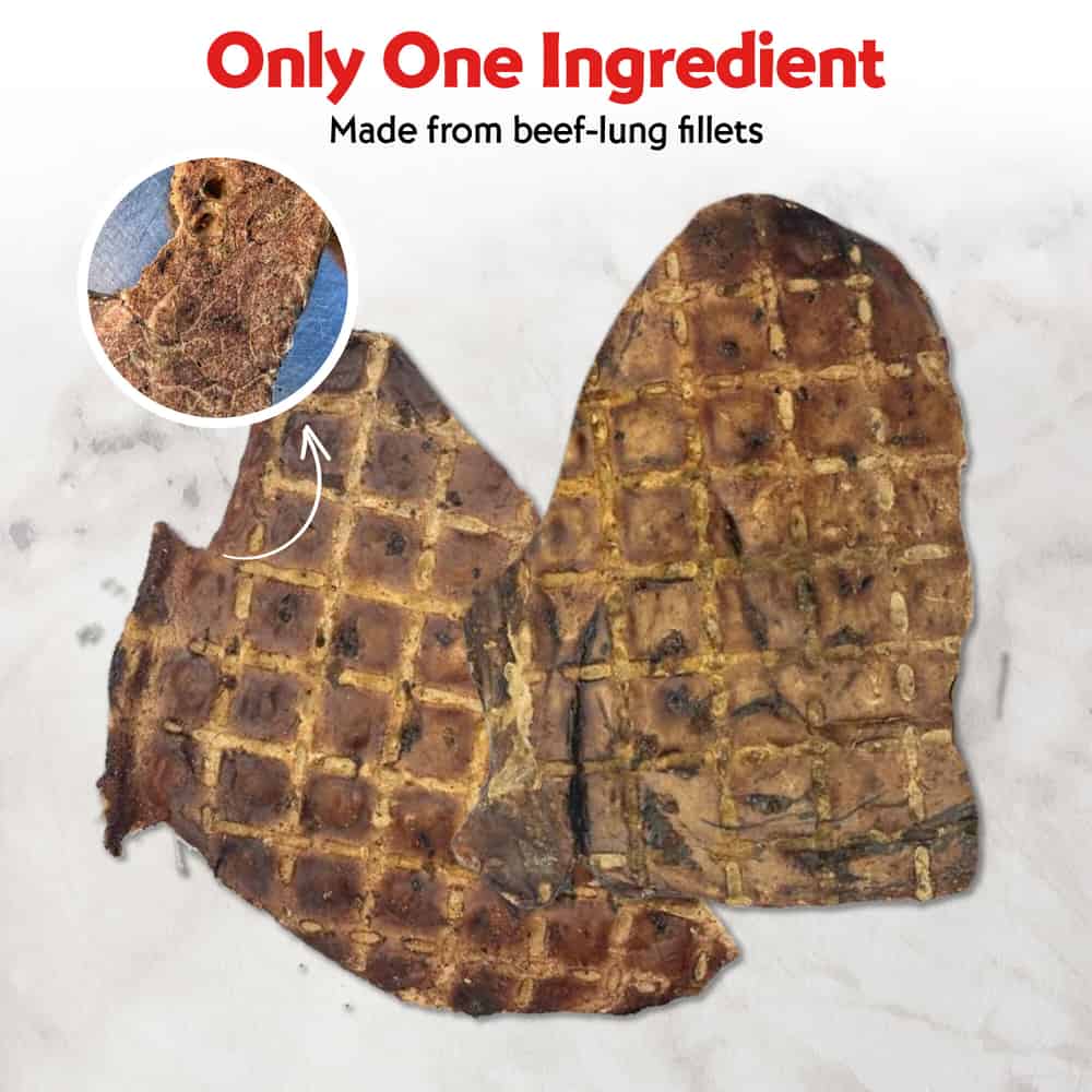 Beef lung is a natural source of chondroitin and glucosamine, which support healthy joints and cartilage, making it beneficial for dogs with arthritis or hip dysplasia. Compared to many other meat sources, beef lung is low in fat, making it a suitable treat for dogs on weight management diets. Beef lung is packed with protein, essential for building and maintaining lean muscle mass.