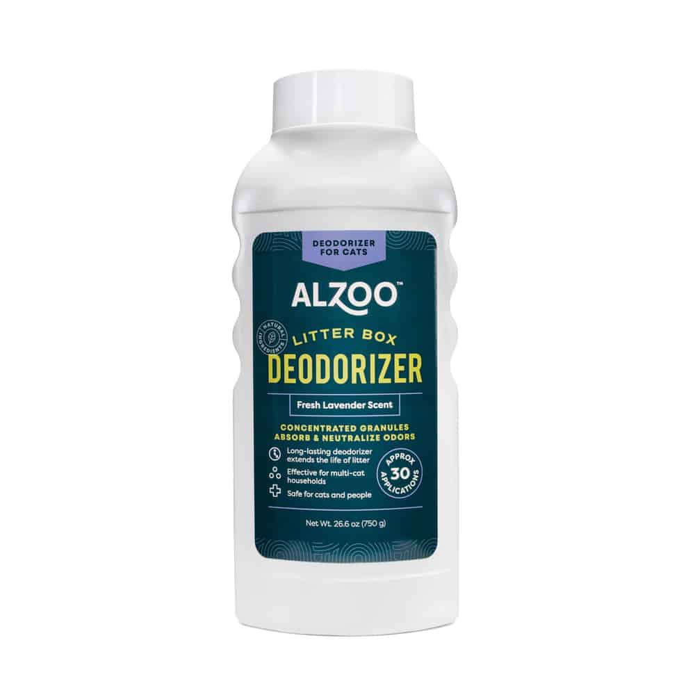 Alzoo™ Deodorizer removes odor and extend the life of your litter, trapping and neutralizing unpleasant odors, preventing odor formation and keeping the litter box smelling fresh and clean for up to 1 month.