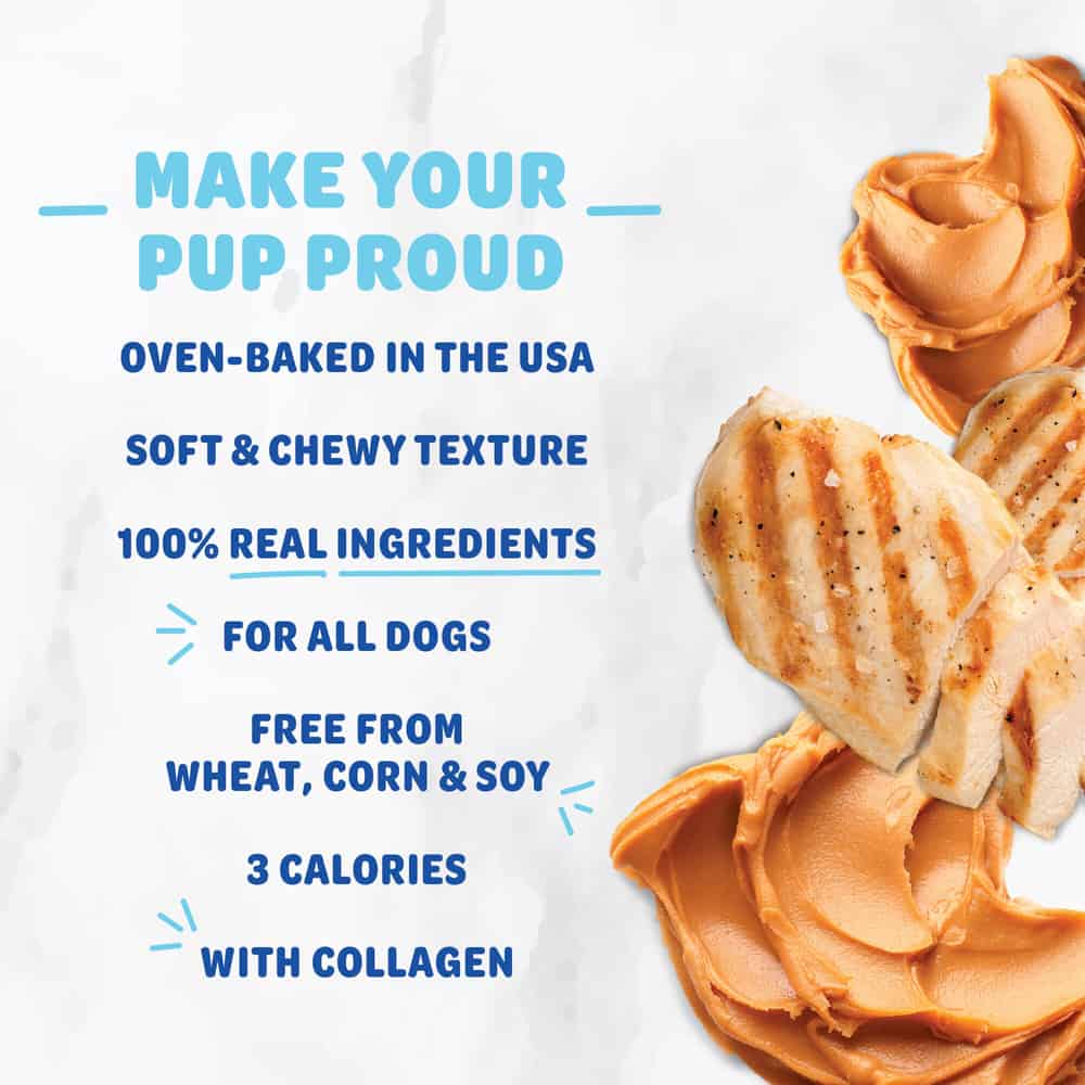 Find your bliss with training treats your pup will want to devour. Packed with naturally occurring collagen for a health boost, plus real peanut butter and chicken to keep tails wagging. Blissful pup, blissful life is what we say.