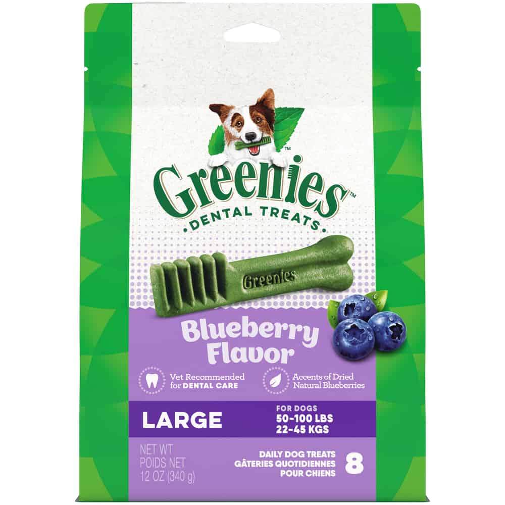 One Greenies Blueberry Flavor Dental Treat a day is all it takes for clean teeth, fresh breath, and a happy dog. Your little dog can't wait to sink their teeth into these delicious dental dog chews, because they are packed with blueberry flavor and feature a delightfully chewy texture that fights plaque and tartar.