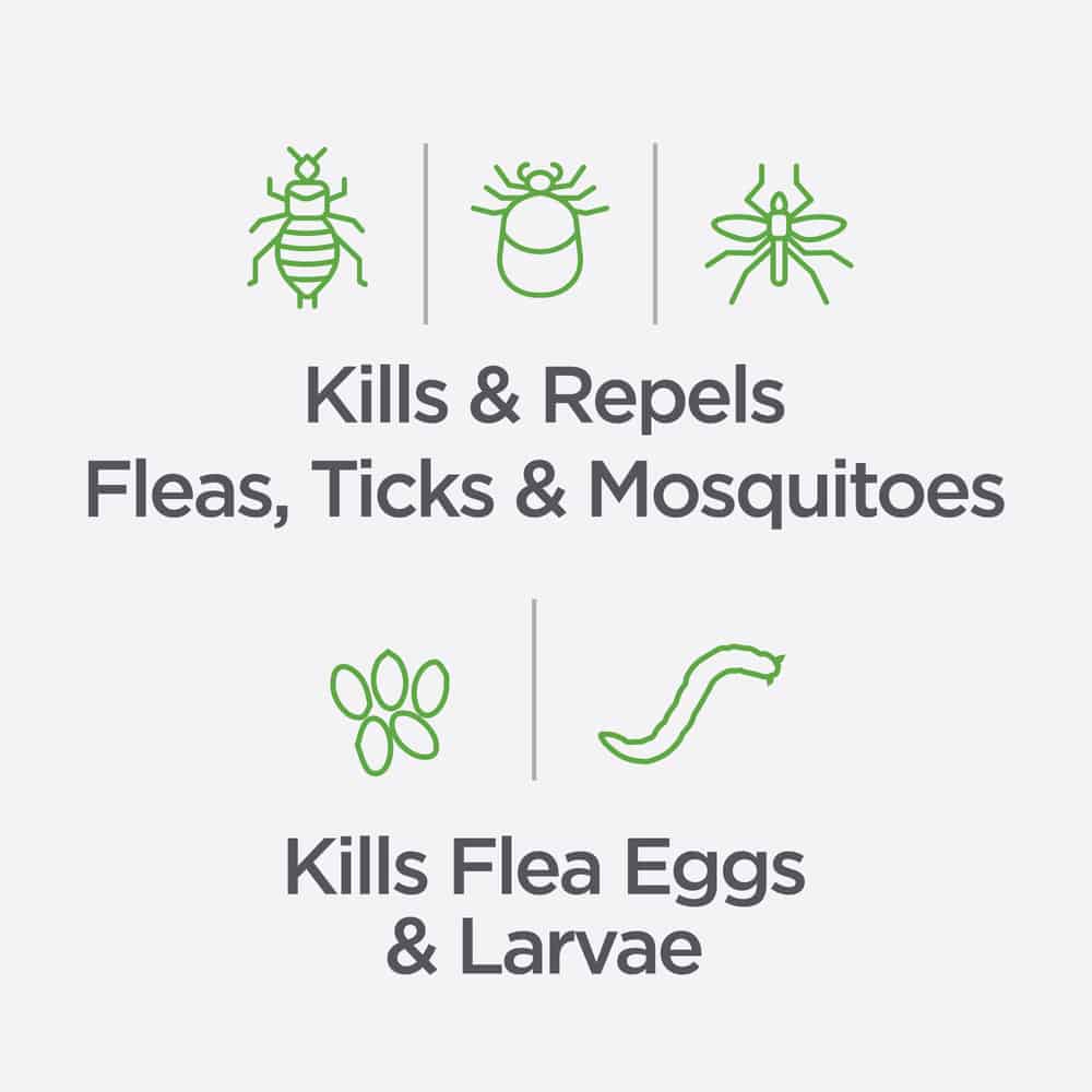 - Kills & Repels Fleas, Ticks & Mosquitoes.