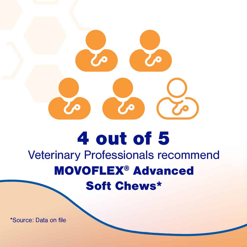 MOVOFLEX® Advanced Chews work by providing a blend of key ingredients like eggshell membrane and hyaluronic acid, which support cartilage health and joint lubrication. This helps maintain flexibility and comfort, allowing your dog to move more freely and comfortably.