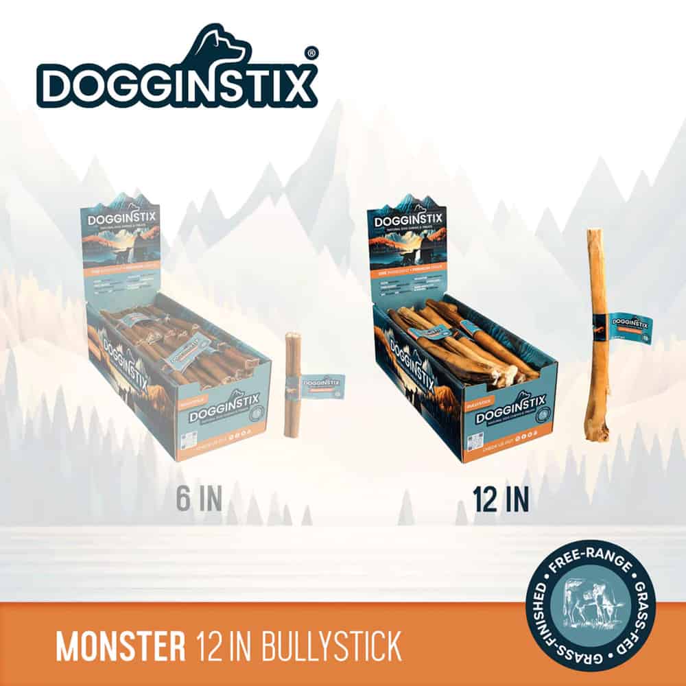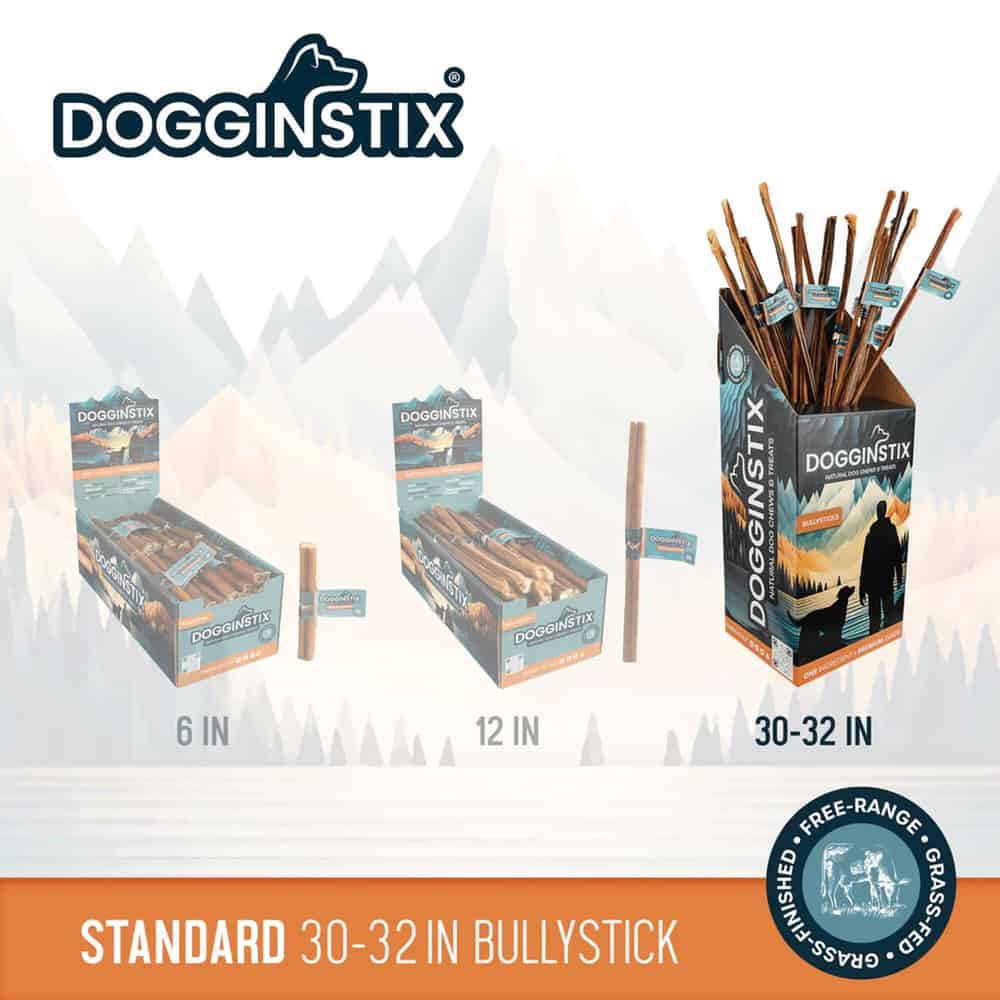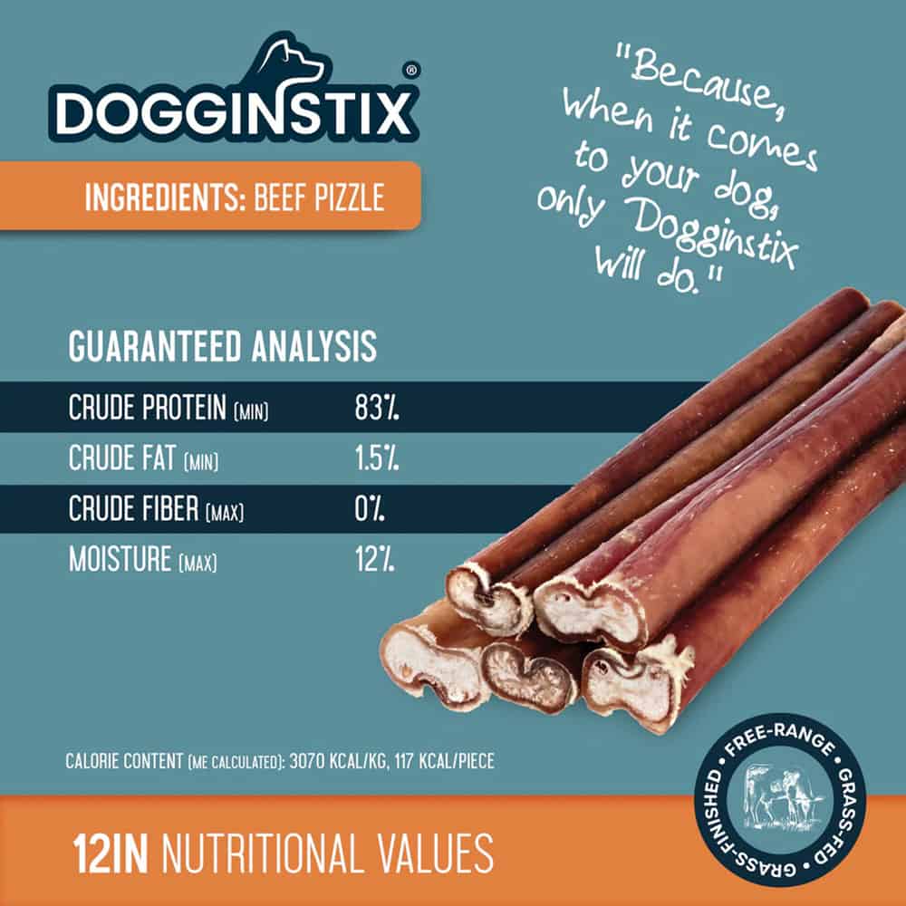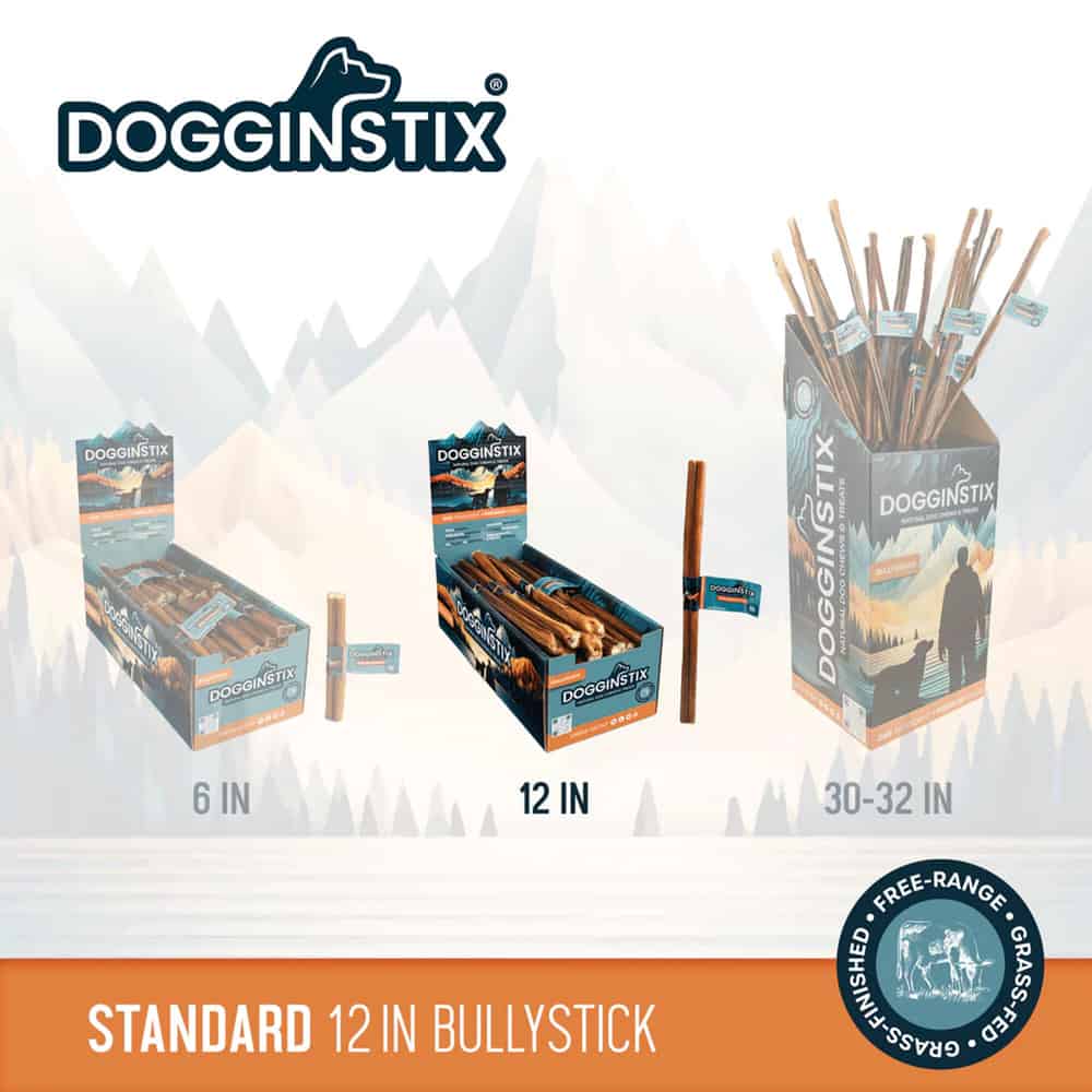 Dogginstix Grass-Fed Natural Bully Sticks are single-ingredient, long-lasting dog chews made from 100% grass-fed beef pizzle, providing a natural and digestible way to satisfy your dog's urge to chew.