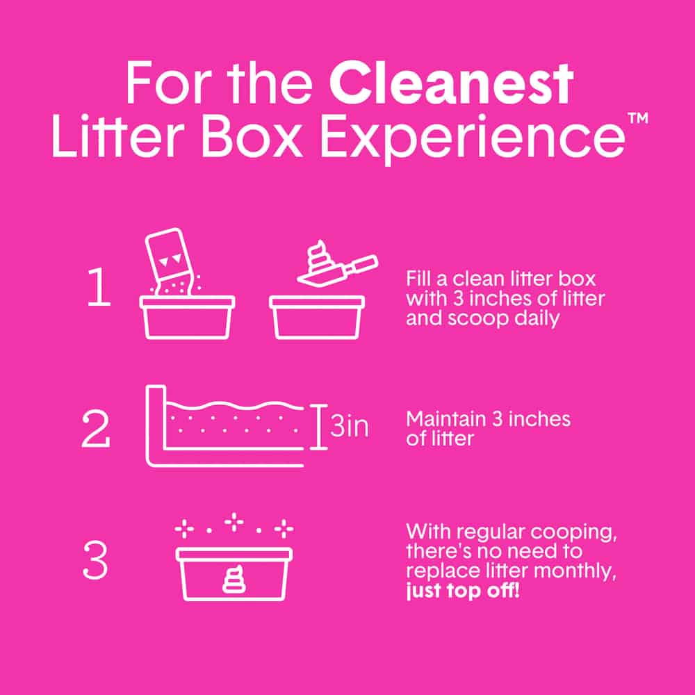 - For best odor prevention and clumps, maintain 3 inches of litter.