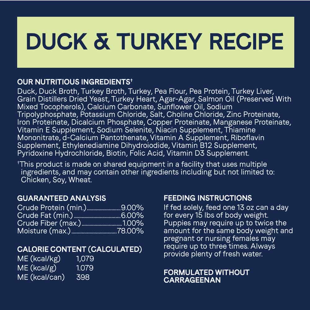 Canidae PURE Grain Free Duck & Turkey Recipe Wet Dog Food Directions: