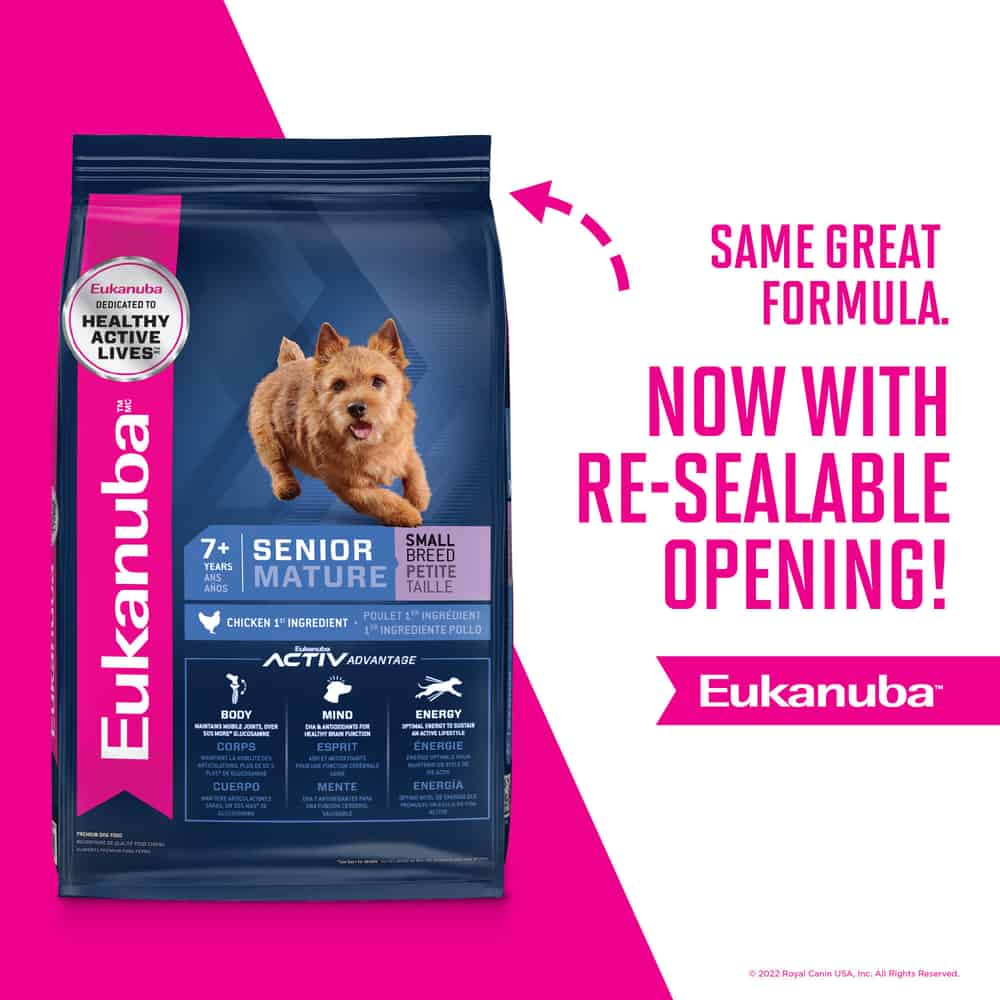 - Helps keep joints mobile and supports lean muscles in active seniors with chondroitin sulfate and 50% more glucosamine (vs. Eukanuba Small Breed dry dog food)