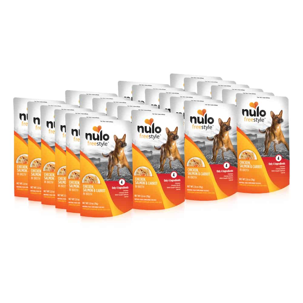- Nulo FreeStyle™ Dog Chicken, Salmon & Carrot Recipe Dog Food is intended for intermittent or supplemental feeding only