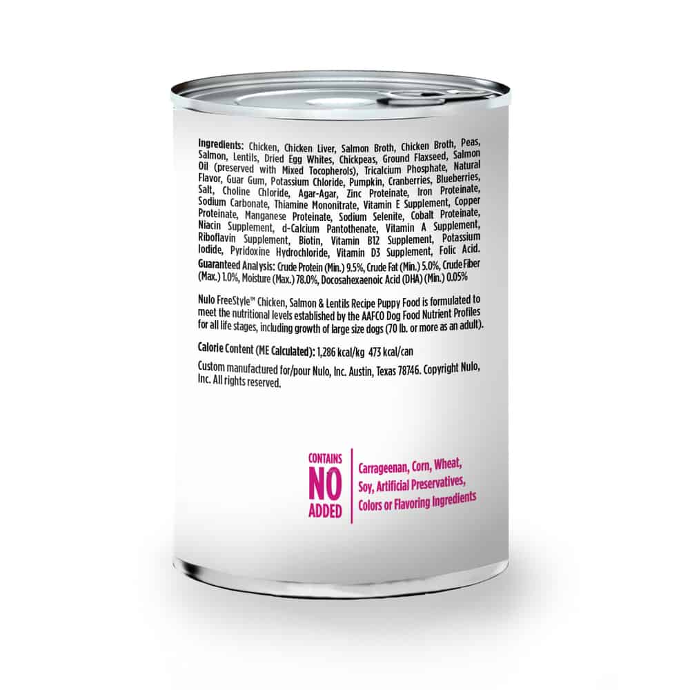 Nulo FreeStyle Puppy Chicken, Salmon & Lentils Pate Ingredients: