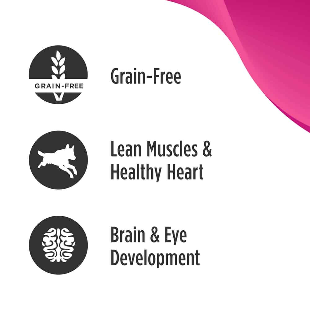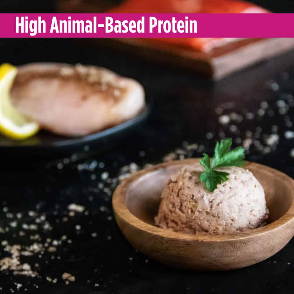 A protein-rich diet with industry-leading meat levels. Lower in carbs to promote lean body mass. Made without carrageenan, corn, wheat, soy or artificial preservatives, colors or flavors