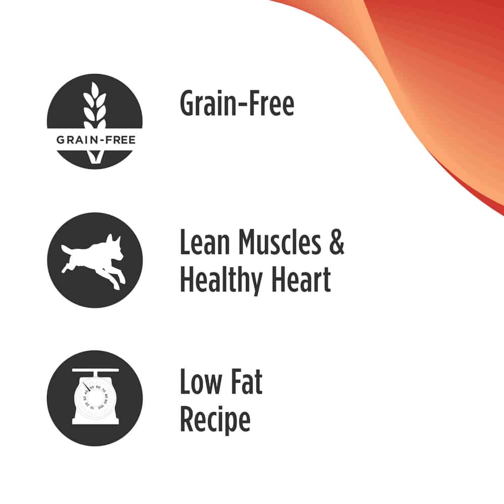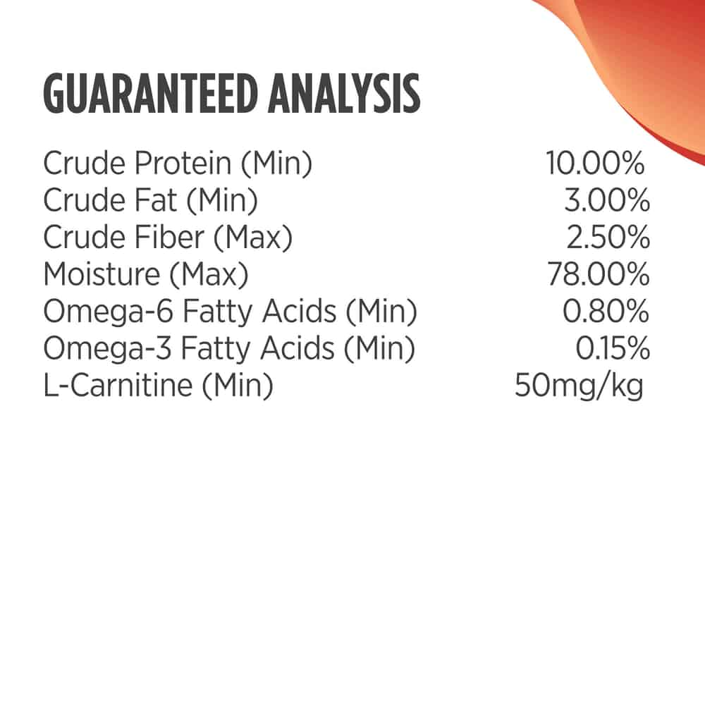 A protein-rich diet with industry-leading meat levels. Lower in carbs to promote lean body mass. Made without carrageenan, corn, wheat, soy or artificial preservatives, colors or flavors