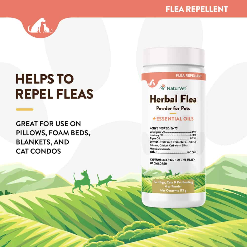 NaturVet Herbal Flea Powder Plus Essential Oils for Dogs & Cats