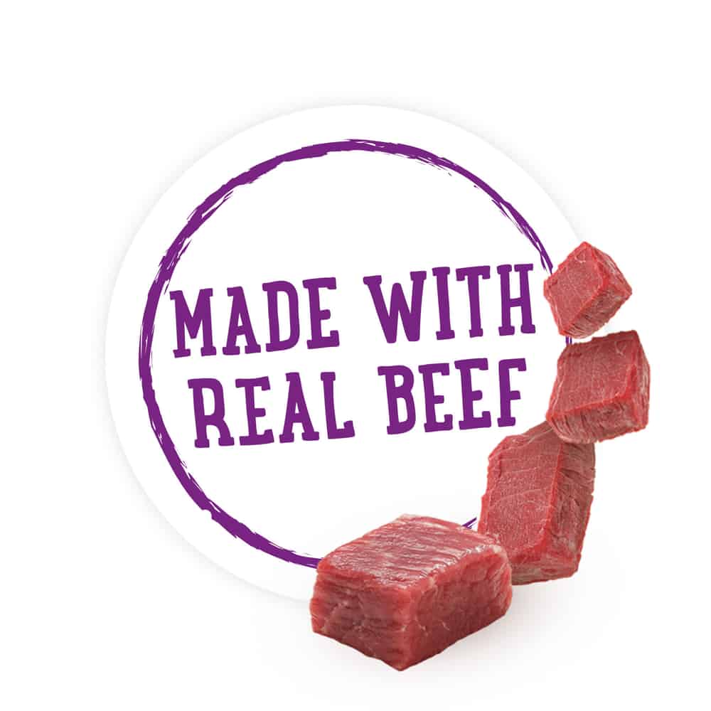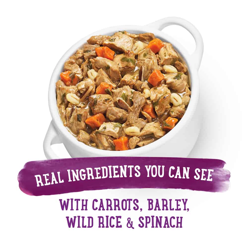 Savory chunks with real beef in this recipe with no artificial colors, flavors, or preservatives give your canine companion something to sink their teeth into while helping supply high-quality protein to support strong muscles. Crafted with carrots, barley, wild rice, and spinach, you can see, along with 23 essential vitamins and minerals, this premium dog food with gravy provides a 100 percent complete and balanced meal for your adult dog.
