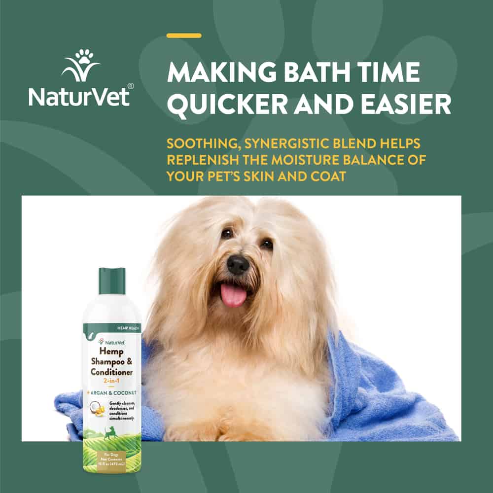 NaturVet Hemp Shampoo & Conditioner 2-in-1 with Argan and Coconut for Dogs