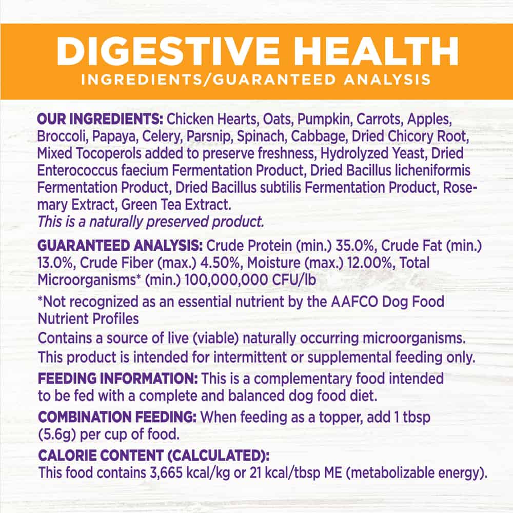 - DIGESTIVE HEALTH DOG FOOD TOPPER: Made with high quality superfoods to support the gut health and overall vitality of your dog.