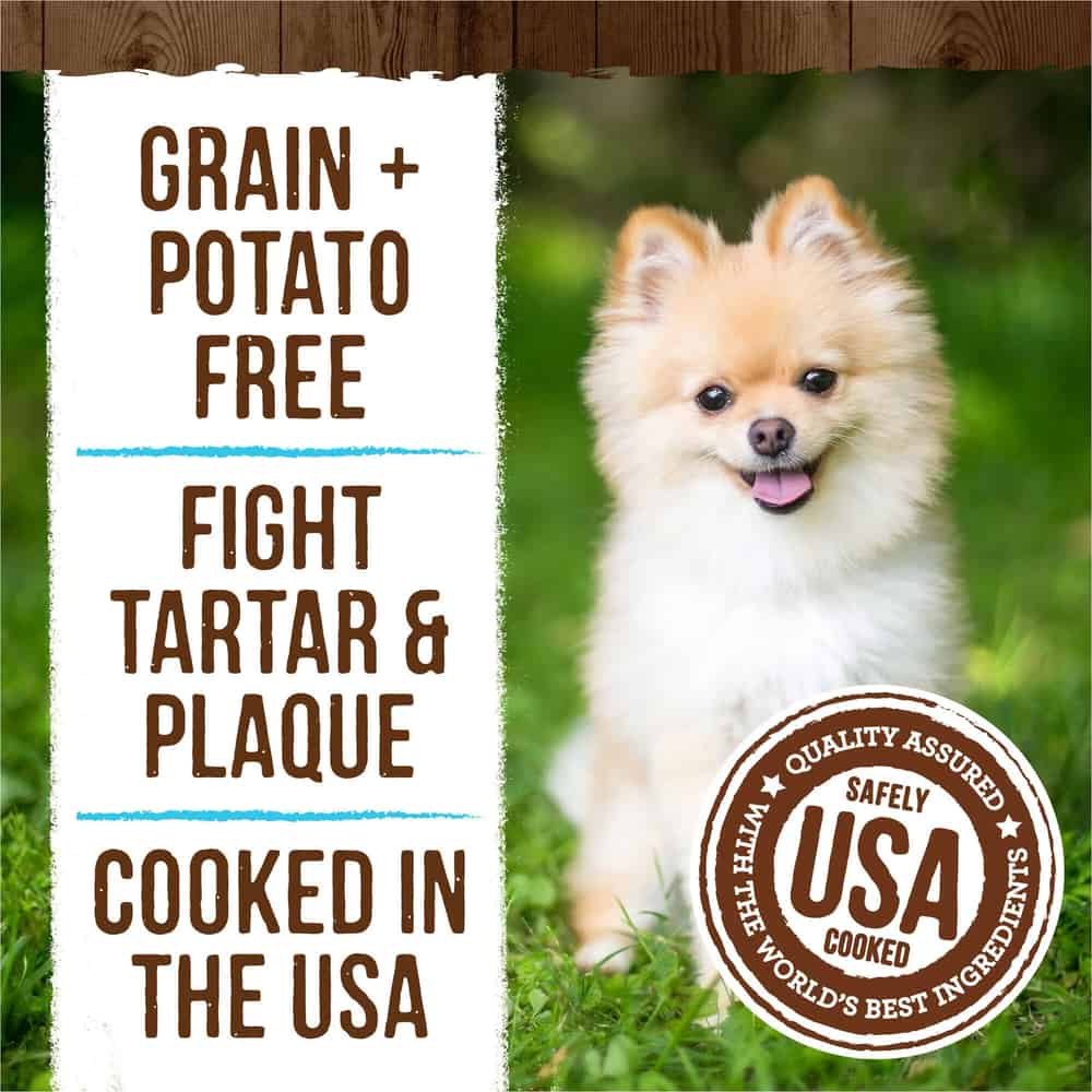 - Grain free dog treats are potato free. Cooked in the USA, these mint dog treats for small dogs weighing 5 to 15 pounds fight plaque and tarter