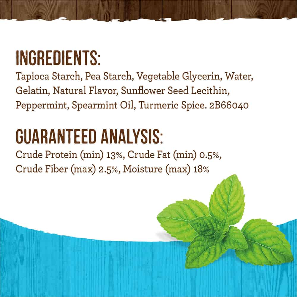 - Dental dog chews with coconut and botanical oils are easily digestible and clean teeth and freshen breath with only 13 ingredients