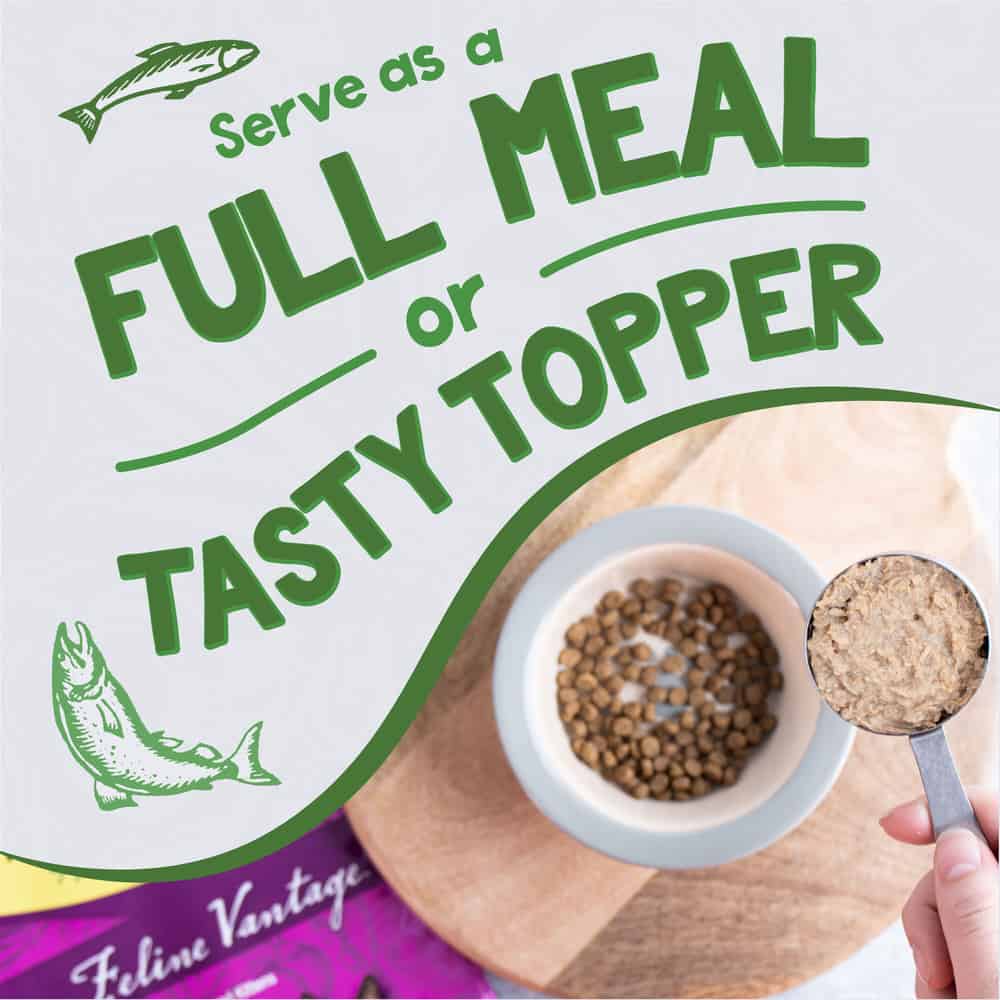 - Feed as a stand-alone meal, cat food topper, or mixer