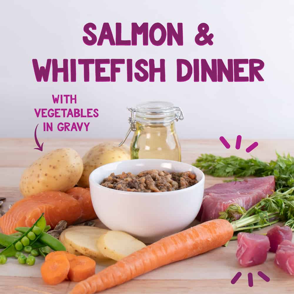 Harbor Harvest Salmon and Whitefish Dinner with Vegetables in Gravy brings the many tastes of the sea to your cat or kitten.Your cat will love this grain-free, highly digestible moist cat food dinner.