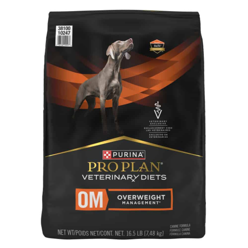 To further help manage his weight, each serving of this weight management dog food contains natural fiber to help contribute to satiety, while isoflavones help reduce the risk of weight regain and fat accumulation. This formula also supports urinary health in dogs by promoting a urinary environment unfavorable to the development of both sterile struvite* and calcium oxalate crystals. Talk to your veterinarian and see if Purina Pro Plan Veterinary Diets OM Overweight Management Canine Formula dog kibble is right for your dog.*Most struvite uroliths in dogs are caused by urinary tract infections. In the case of nonsterile struvite uroliths, it is important to treat with the appropriate antibiotic in addition to dietary management.