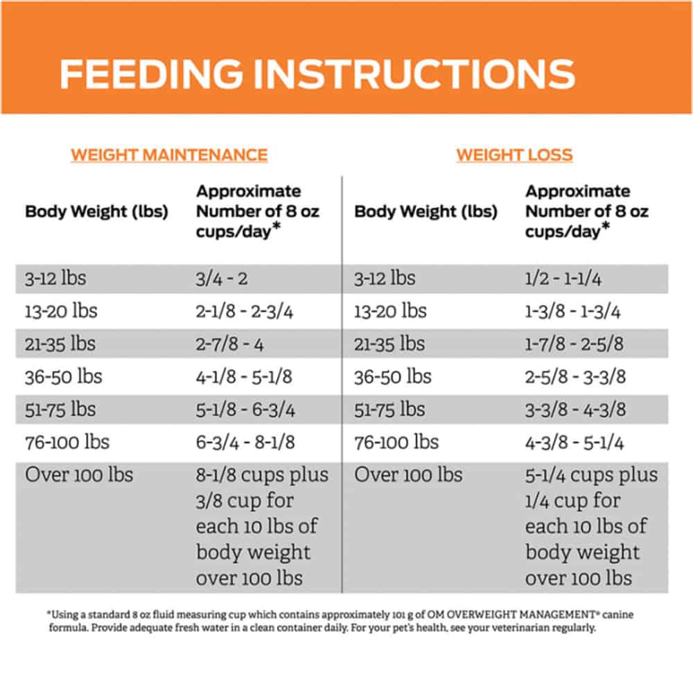 Purina Pro Plan Veterinary Diets OM Overweight Management Canine Formula Dry Dog Food Directions: