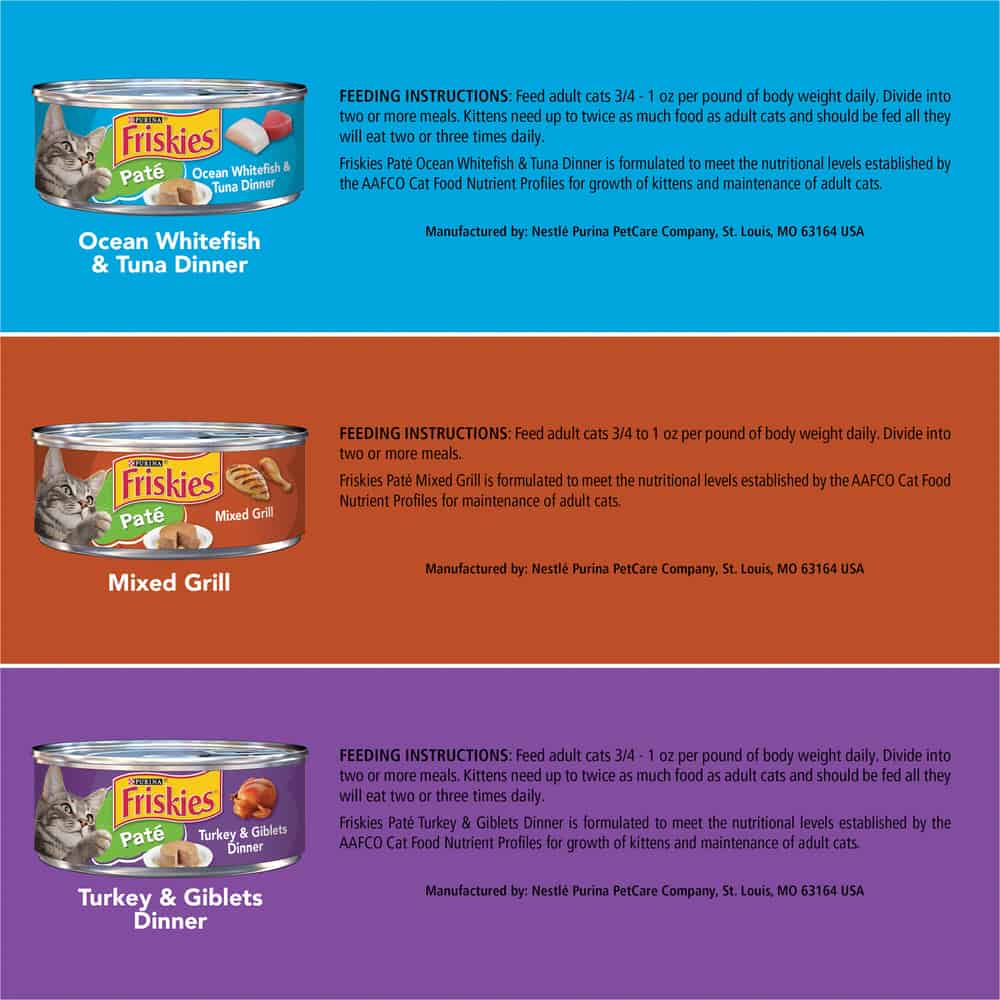 Friskies Pate Variety Pack Wet Cat Food 24 Cans Directions: