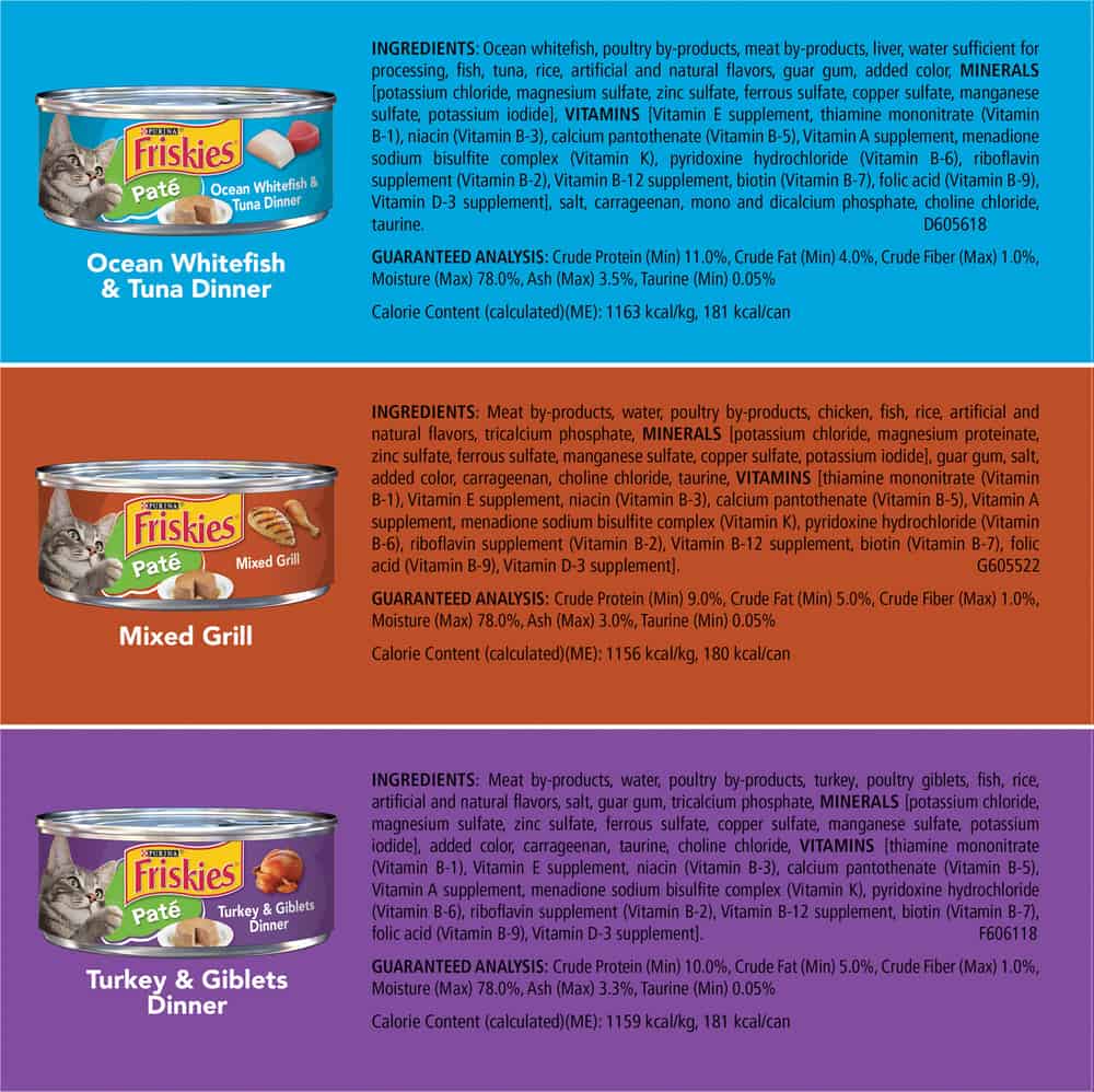 Friskies Pate Variety Pack Wet Cat Food 24 Cans Ingredients: