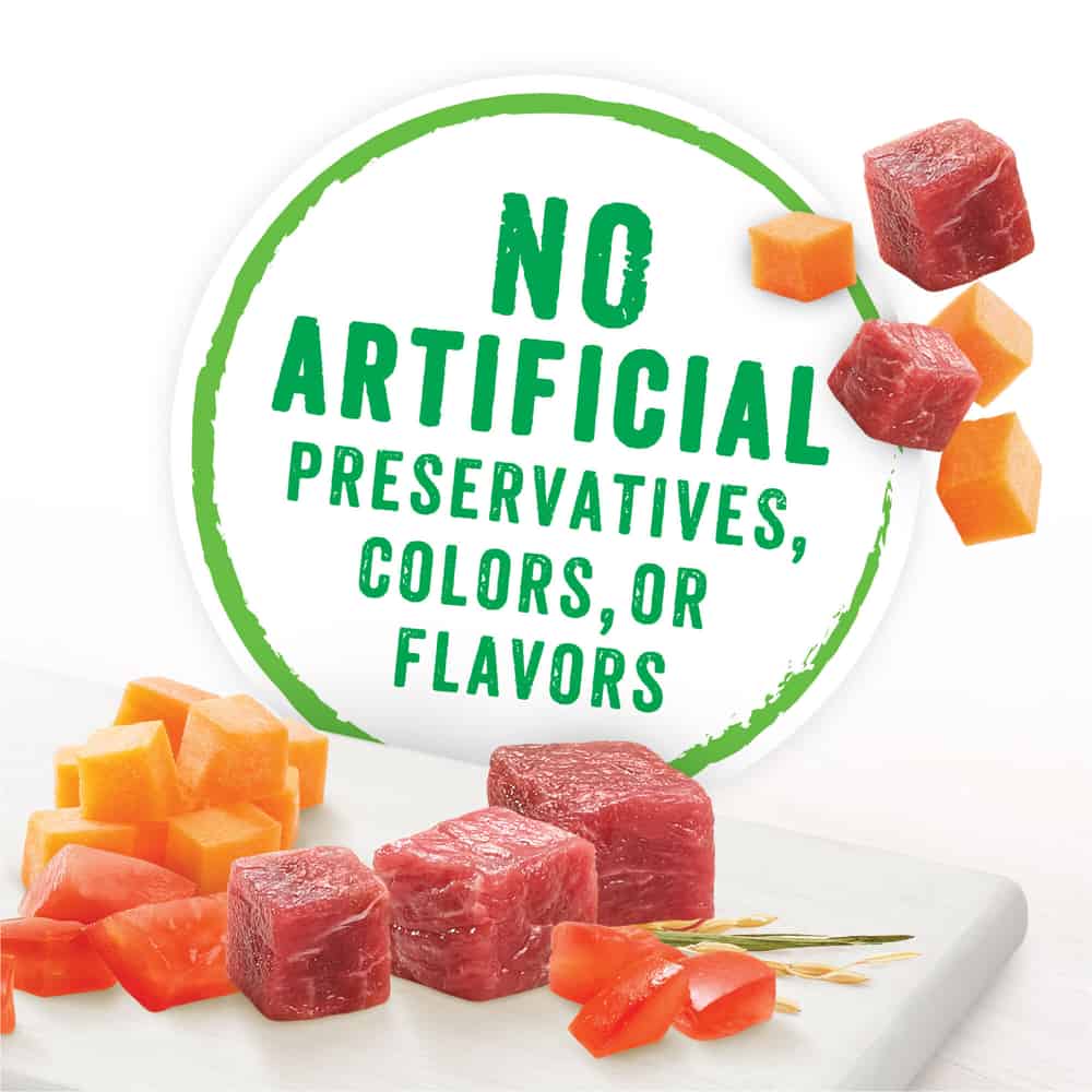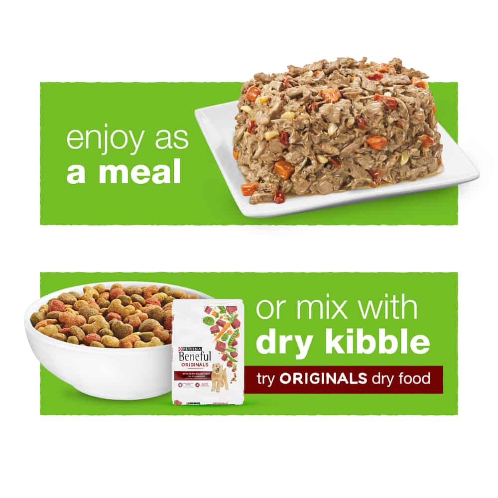 - Packaged in re-closeable Beneful dog food tubs for easy storing of leftovers