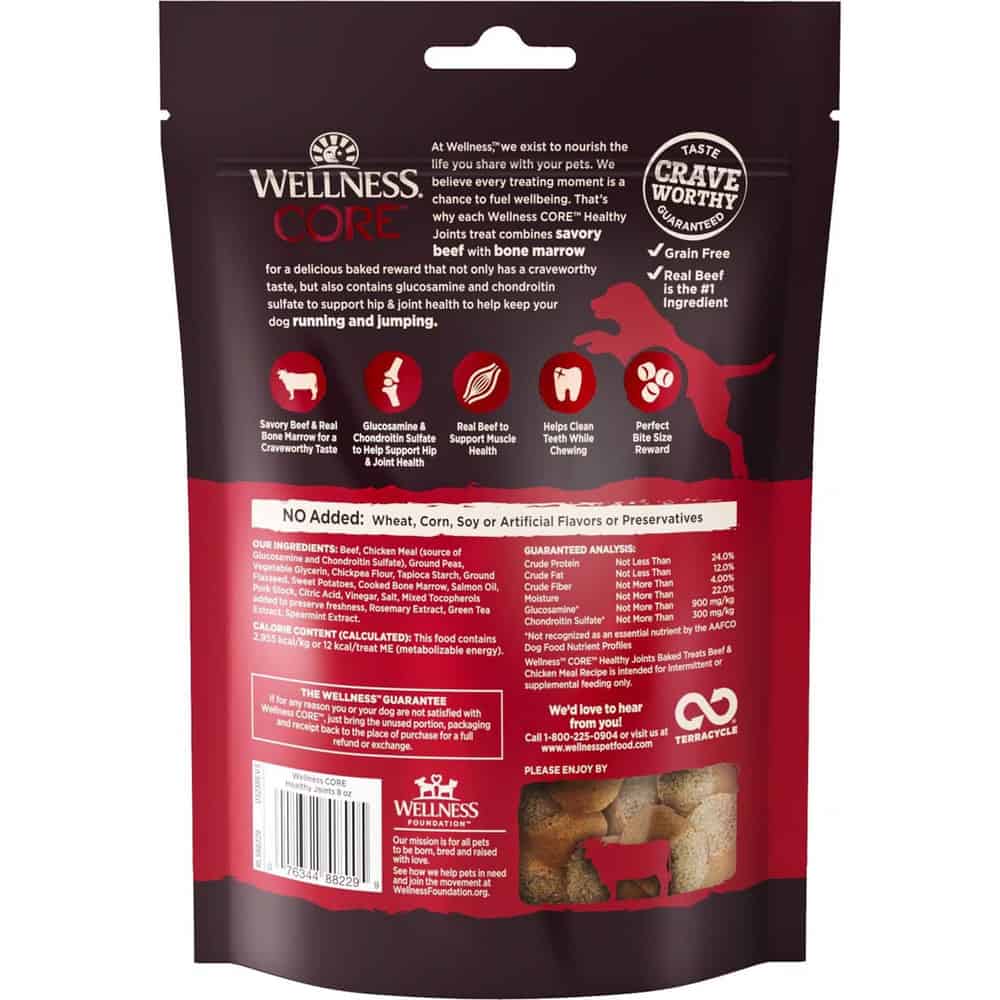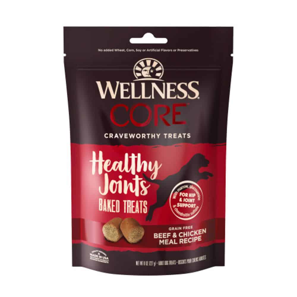 - Wellness® CORE Healthy Joints Hearty Beef Recipe baked dog treats are intended for intermittent or supplemental feeding only.