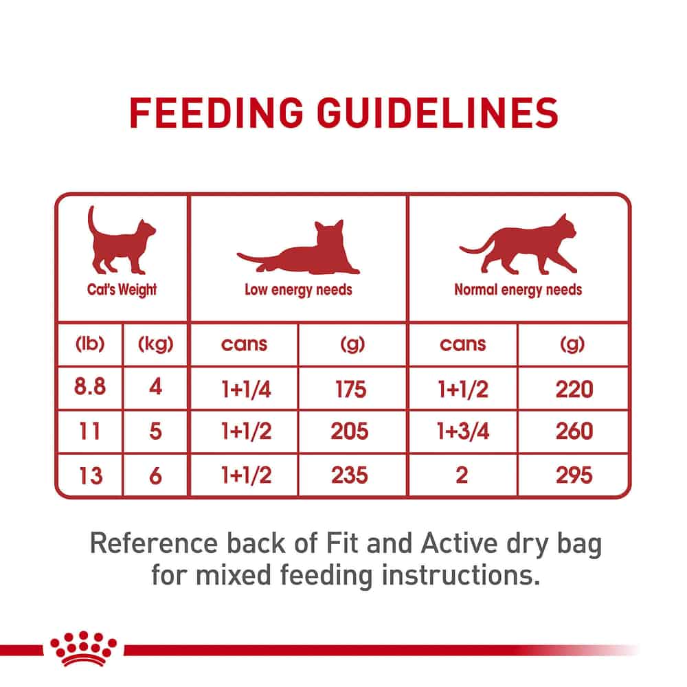 - Optimal feeding amounts may vary according to your cat's temperament, activity level, and environment.
