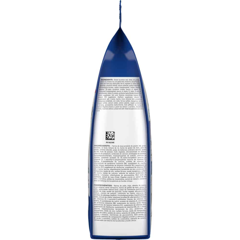 | chicken by-product meal, wheat, oat groats, brown rice, brewers rice, corn gluten meal, chicken fat, natural flavors, dried plain beet pulp, wheat gluten, fish oil, vegetable oil, sodium silico aluminate, potassium chloride, calcium carbonate, psyllium seed husk, fructooligosaccharides, sodium tripolyphosphate, choline chloride, vitamins [DL-alpha tocopherol acetate (source of vitamin E), L-ascorbyl-2-polyphosphate (source of vitamin C), biotin, D-calcium pantothenate, vitamin A acetate, pyridoxine hydrochloride (vitamin B6), niacin supplement, folic acid, thiamine mononitrate (vitamin B1), vitamin B12 supplement, riboflavin supplement, vitamin D3 supplement], salt, L-lysine, taurine, trace minerals [zinc proteinate, manganese proteinate, zinc oxide, ferrous sulfate, manganous oxide, copper sulfate, calcium iodate, sodium selenite, copper proteinate], L-tyrosine, glucosamine hydrochloride, GLA safflower oil, marigold extract (Tagetes erecta L.), green tea extract, L-carnitine, chondroitin sulfate, rosemary extract, preserved with mixed tocopherols and citric acid. |