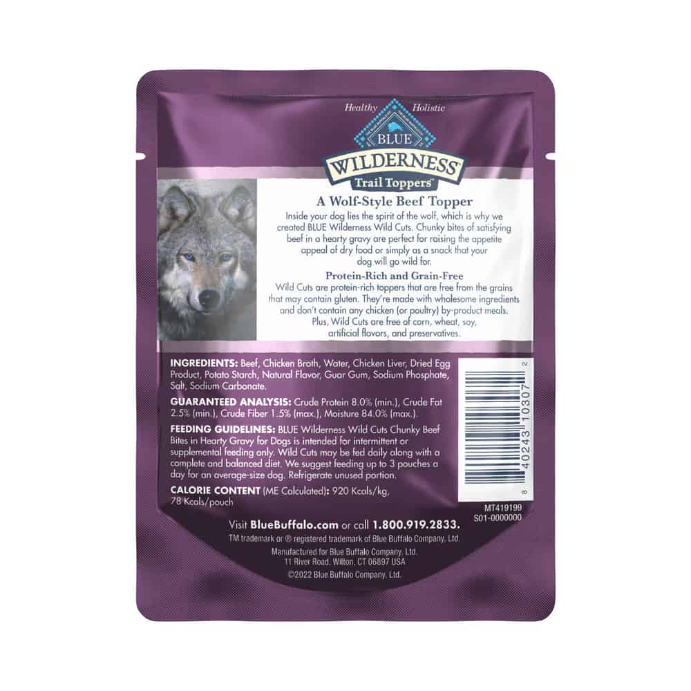 Blue Buffalo BLUE Wilderness Adult Wild Cuts Trail Toppers Chunky Beef Bites Dog Food Topper Directions: