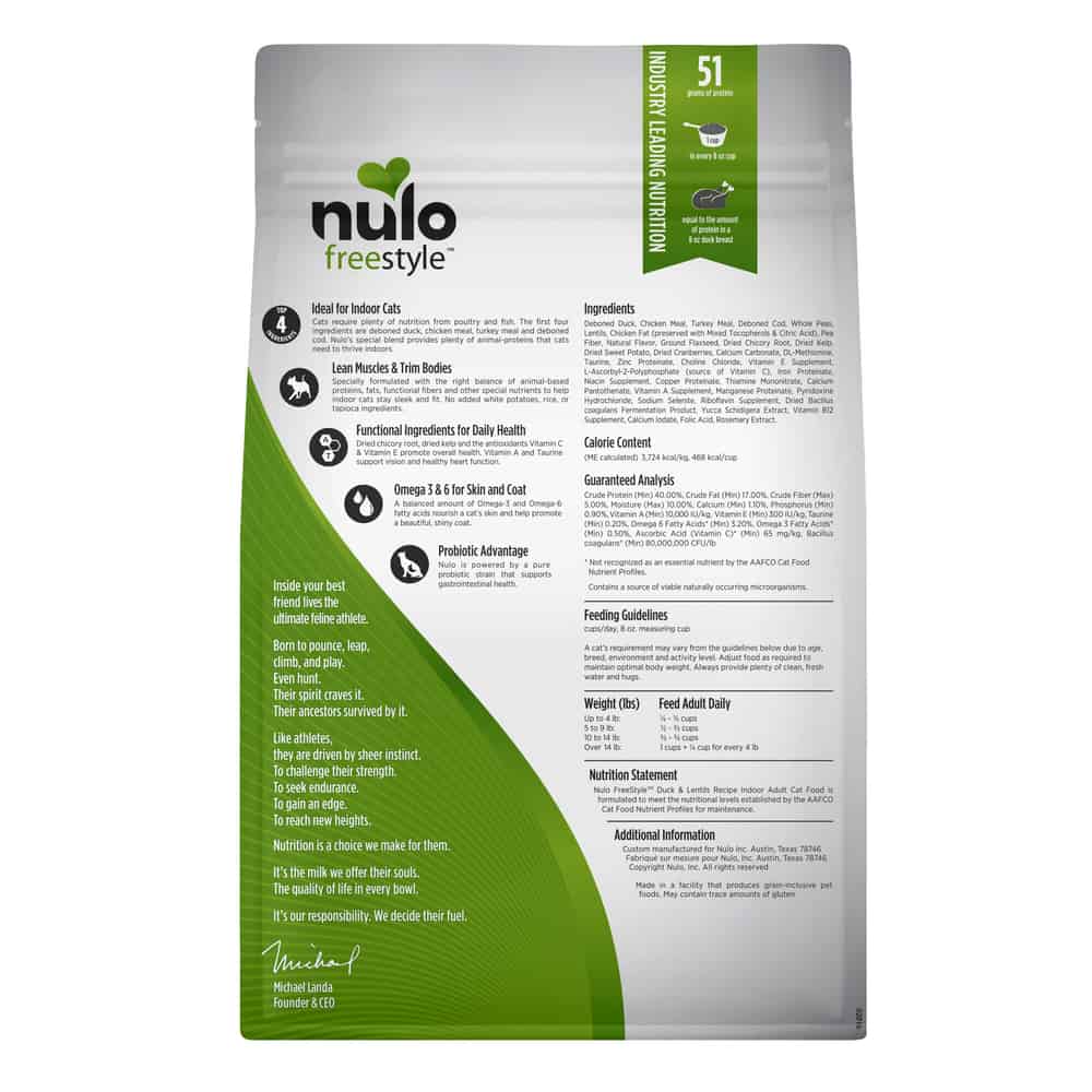 Nulo FreeStyle Indoor Grain-Free Duck & Lentils Dry Cat Food Directions: