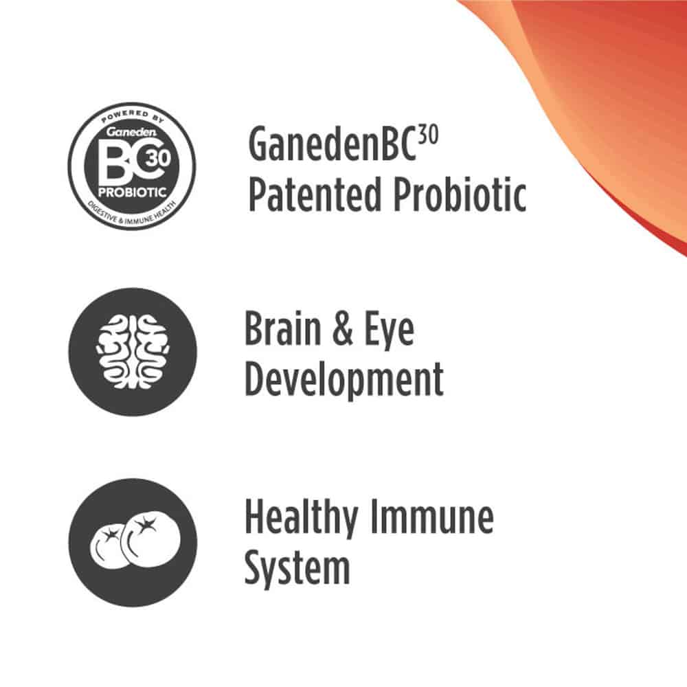 - DHA FOR BRAIN & EYE DEVELOPMENT - DHA (from real salmon) is a key Omega-3 fatty acid and building block of the brain, and is important for vision and nervous system regulation.