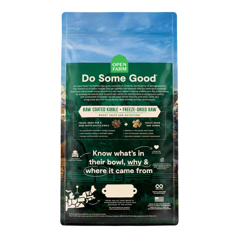 Protect from moisture. Open Farm recommends storing in the original bag in a cool, dry place. Once opened, they also recommend feeding their RawMix Recipes within two months for the freshest flavor.
