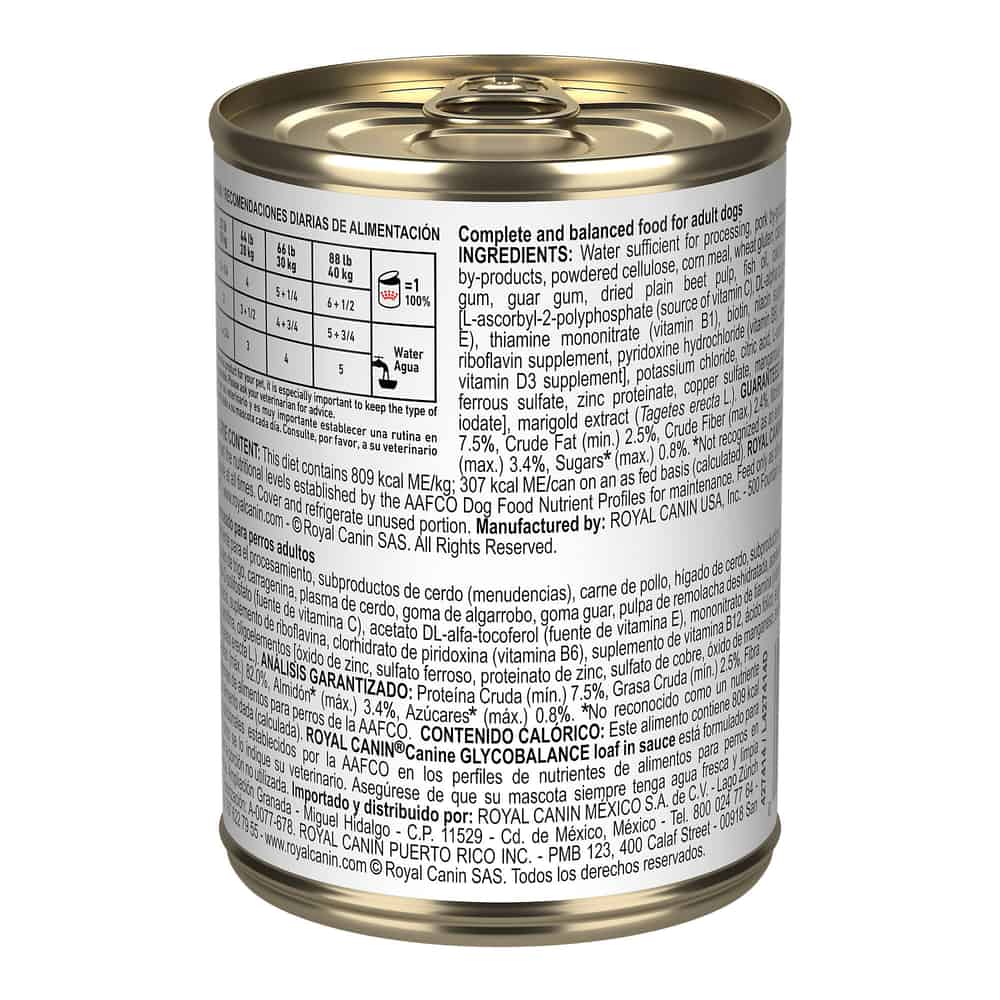 Royal Canin Veterinary Diet Canine Glycobalance Loaf in Sauce Wet Dog Food Ingredients: