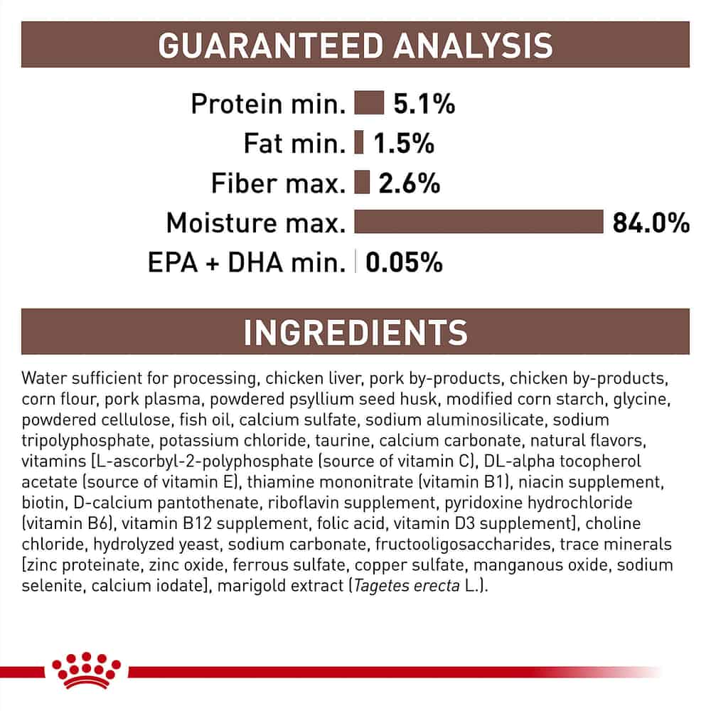Royal Canin Veterinary Diet Feline Gastrointestinal Fiber Response Thin Slices in Gravy Wet Cat Food Ingredients: